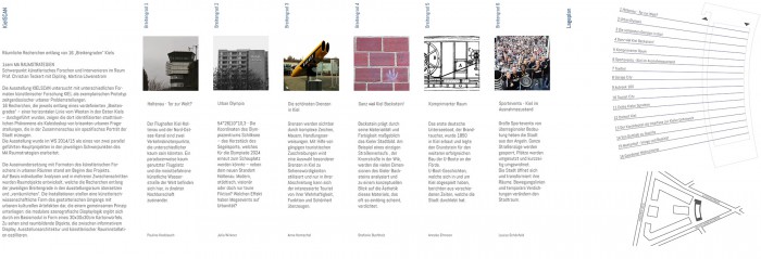 Das Projekt KielSCAN wurde im Wintersemester im Studiengang Raumstrategien im Schwerpunkt Künstlerisches Forschen und Intervenieren im Raum von Prof. Christian Teckert und Dipl. Ing. Martina Löwenstrom betreut.