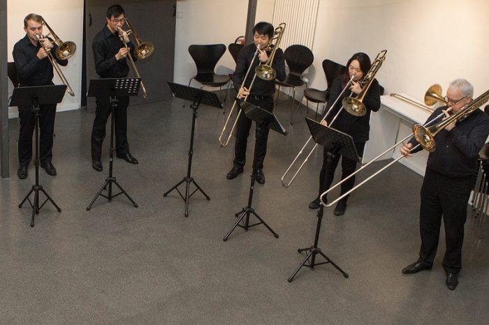 Das MHL-Posaunenensemble mit Studierenden der Klasse Thomas Bender.