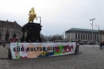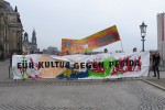 „Wir solidarisieren uns und unterstützen den Teil der Bevölkerung Dresdens, der sich nicht mit der Pegida Bewegung identifiziert. Wir haben die von uns selbst gestalteten Banner mit der Aufschrift -Für Kultur, gegen Pegida- in einem Marsch durch die Stadt getragen und an verschieden öffentlichen Plätzen und Denkmälern gezeigt. Wir erhielten sowohl positive als auch negative Kommentare, vom unterstützenden Zuspruch bis hin zu aggressiven Pöbeleien war alles dabei“, so die Gruppe.