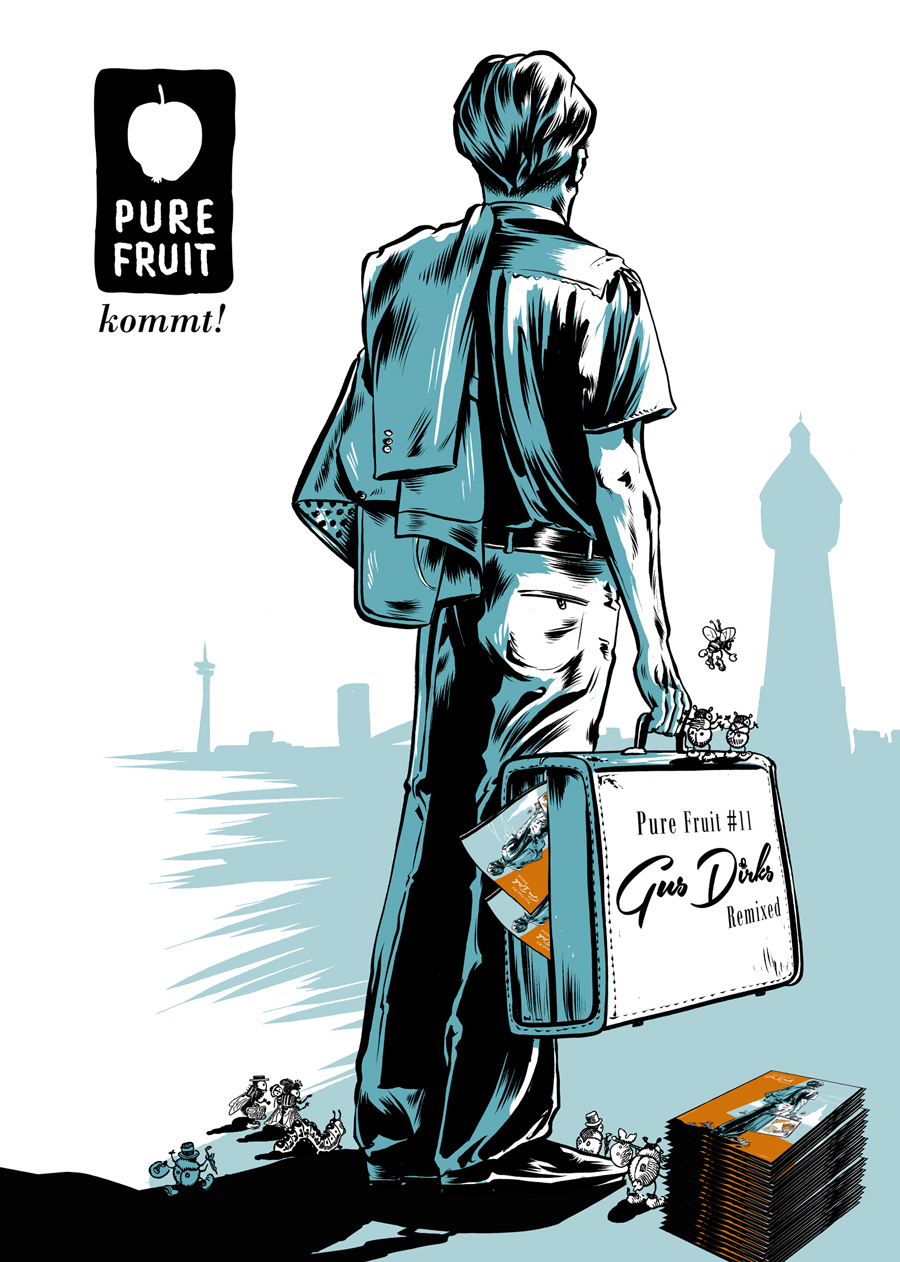 ZeichnerInnen aus ganz Deutschland präsentieren im Comicheft Pure Fruit #11 ihre Verneigung vor dem 1902 verstorbenen Heider Comicpionier Gus Dirks. Dieser stieg mit seiner Reihe »Latest News from Bugville« Anfang des 20. Jahrhunderts in den Vereinigten Staaten zu einem Comic-Star auf. Dirks stammt ursprünglich aus Heide und ist heute nahezu vergessen. Das 68-seitige Comicheft soll das ändern und wird darum bundesweit kostenlos erhältlich sein.