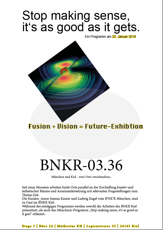 Während des eintägigen Programms wedren sowohl die Arbeiten des BNKR Kiel präsentiert als auch das Münchener-Programm „Stop making sense, it’s a as good as gets“ erläutert.